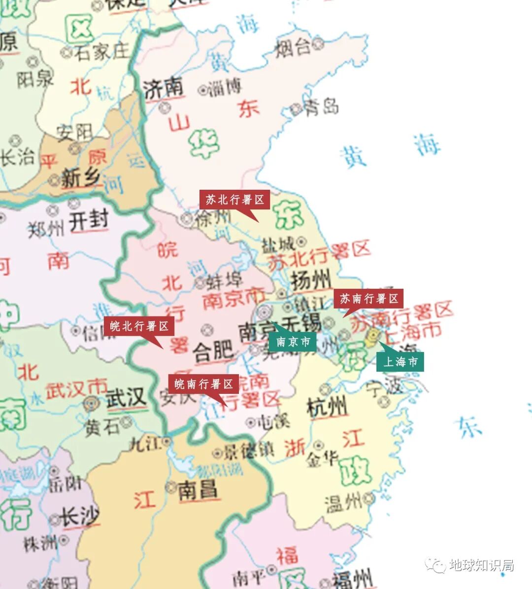 江苏复省之前的情况(图:《中华人民共和国行政区划沿革地图集1949-1999》)▼