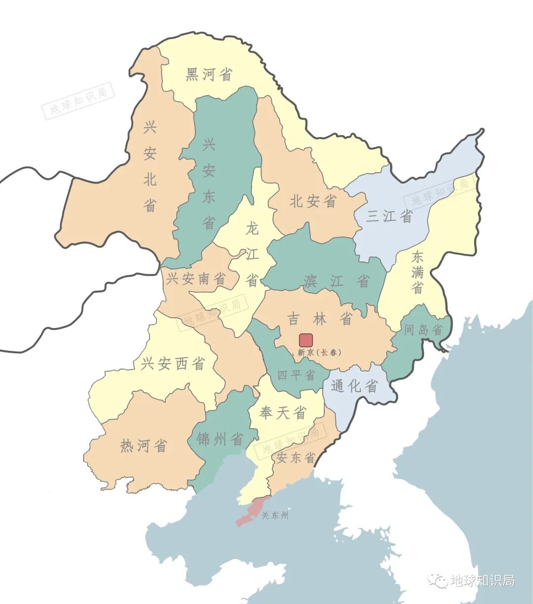 (“伪满”在覆灭前,曾把东北划分为20个省份)▼