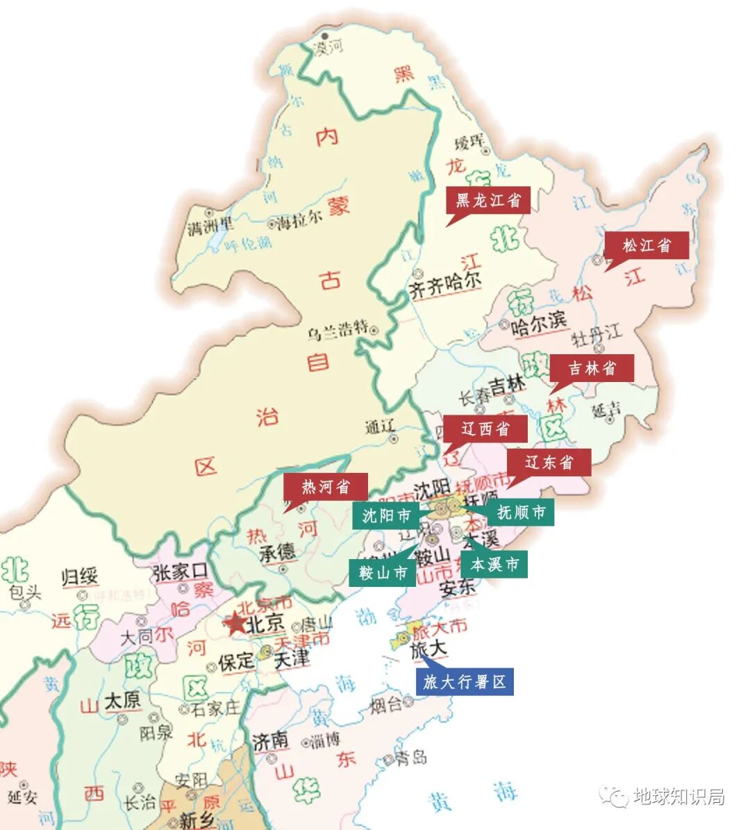 建国前后,东北政区还在不断调整。此时在各省级之上有东北大区一级政府,省与直辖市由过去的一级行政区降为二级,旅大行署区也在这个时间正式成立。
