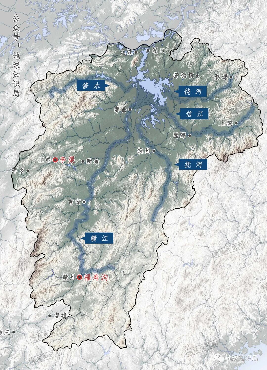 江西境内97%的地表径流都通过赣江、抚河、信江、饶河、修河五大河流,从东、南、西三面汇流注入鄱阳湖。这样独特的地形气候条件,使得江西洪涝干旱灾害频繁。