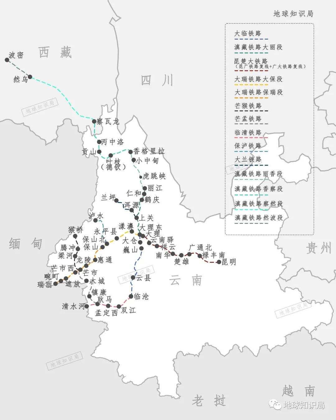 至于“迪庆-丽江-大理-临沧”一线以西的滇西地区,其铁路网建设规模也不止于此,诸多设想和规划中的线路也在陆续建设或推进。