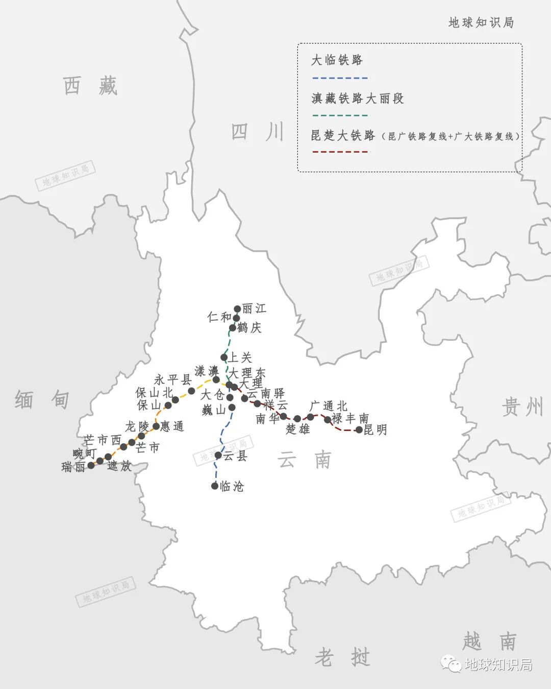 对于大理这座滇西枢纽而言,随着大瑞铁路大保段的开通,再配合上昆楚大铁路(昆广铁路复线+广大铁路复线)、滇藏铁路大丽段、大临铁路,大理正式形成“十”字形铁路枢纽格局。