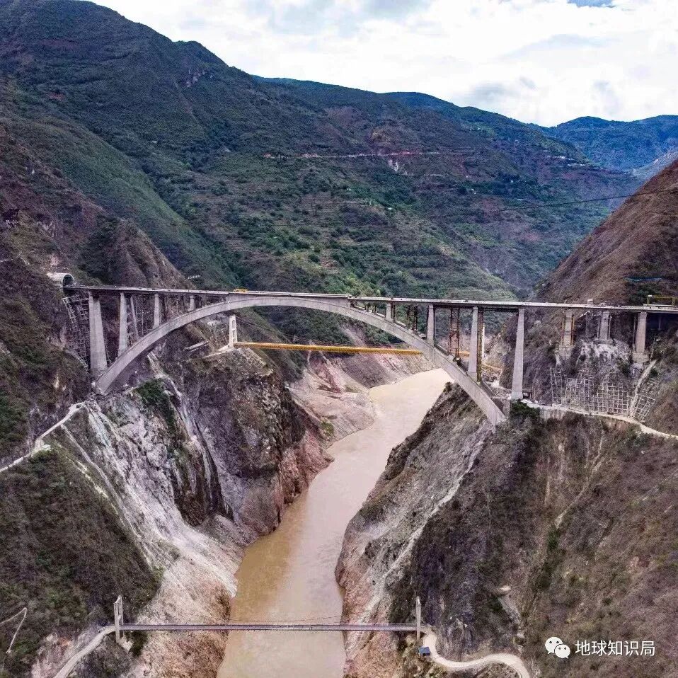 澜沧江特大桥,为双线铁路桥,全长528.1米,主跨342米,桥面至江面高差270米,相当于90层楼房的高度。