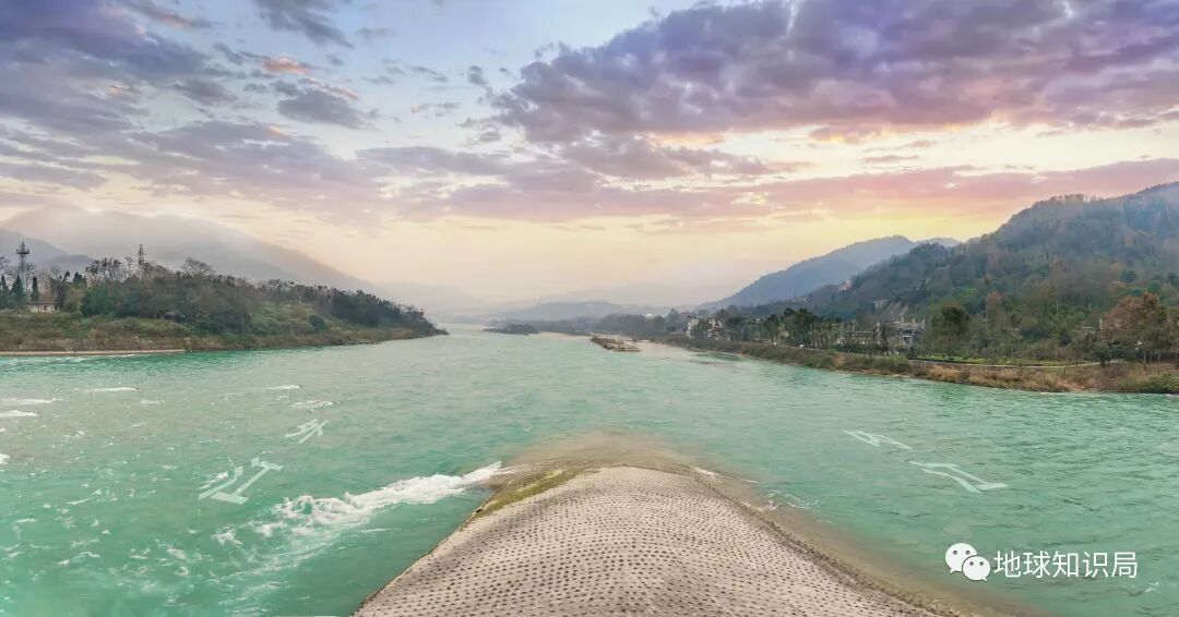 冲出西部山地后进入地势相对低平的成都平原,河道变宽流速放缓。河水中裹挟的泥沙沉降形成冲积扇,为成都平原提供了肥沃的土地。