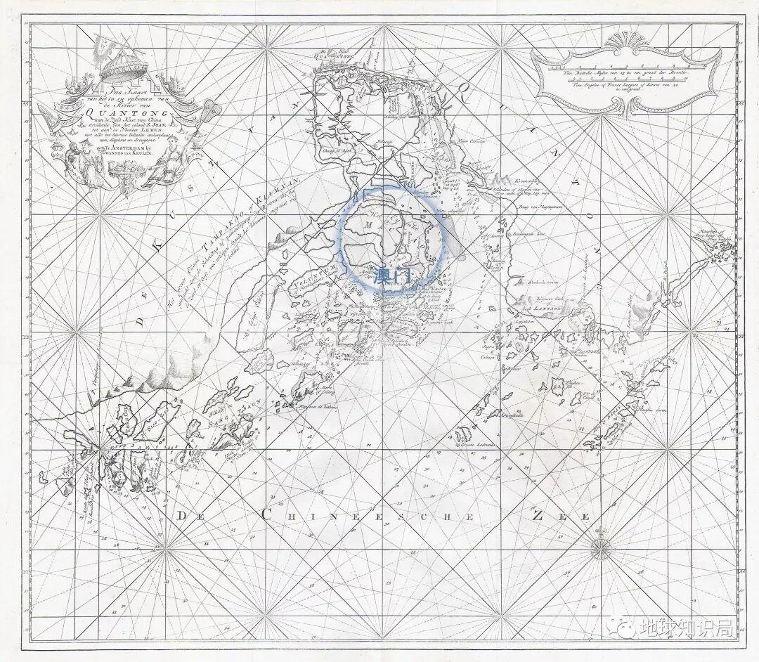 一幅18世纪荷兰制地图上的澳门与珠江口▼