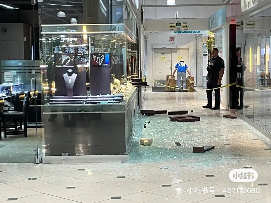 从照片上看,警方已经到现场处理,并拉起警戒线。商铺侧面的玻璃碎了一地。小红书网友@angela发帖表示,几个劫匪简直是疯狂敲碎珠宝店的玻璃。
