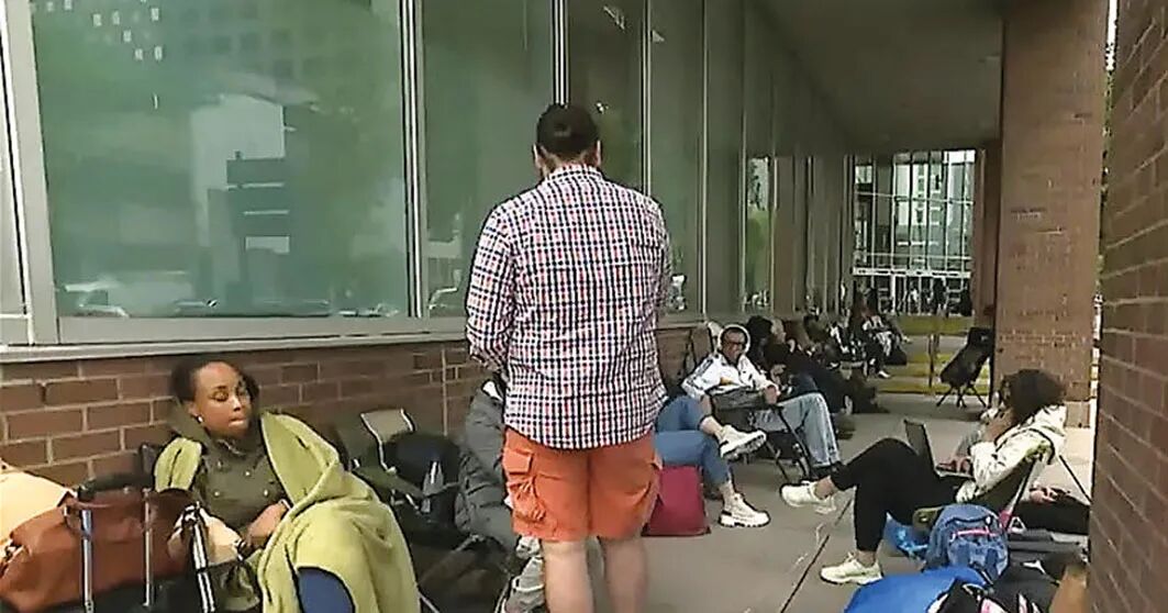 巴西里周二告诉CTV说:“我妈妈坐在这里,然后我丈夫睡在那里。我们今天早上进去时非常混乱,因此没有成功拿到护照,所以我们又回来了,决定要在这里睡一晚,明天早上再进办事处。”