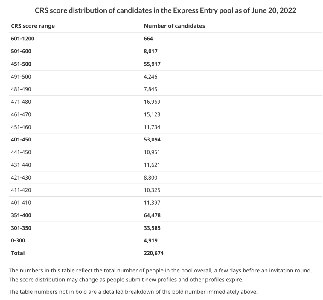 分数高的候选者最有可能收到申请邀请(ITA)。