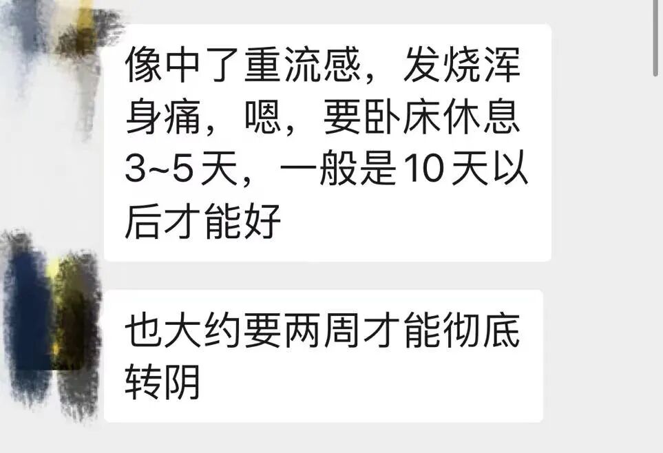“像得了重流感,发烧浑身疼。大约要两周才能彻底转阴。”