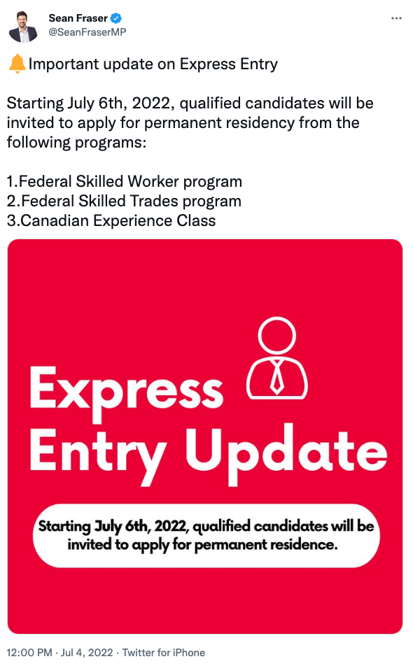 联邦移民部门因疫情及旅游限制而暂时停止服务后,7月6日(周三)重新对快速通道(Express Entry)系统下的所有项目进行抽签。