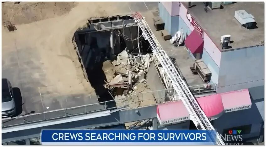 ref:https://bc.ctvnews.ca/1-person-unaccounted-for-after-east-vancouver-rooftop-parking-lot-collapse-fire-officials-1.5989193