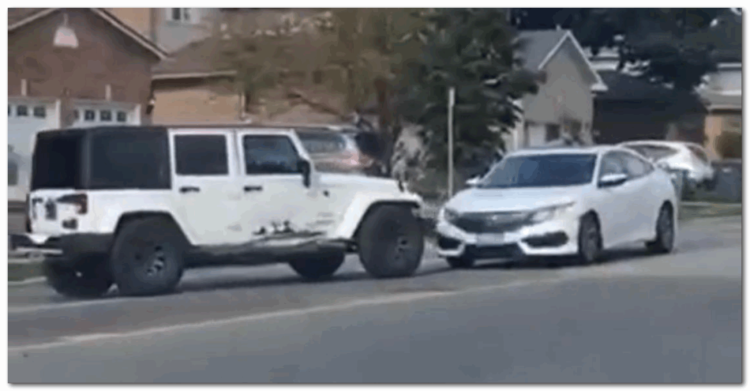 另一位网友发布了一张照片,称他目睹了这辆吉普车越过路边,沿着人行道行驶,然后闯了红灯。