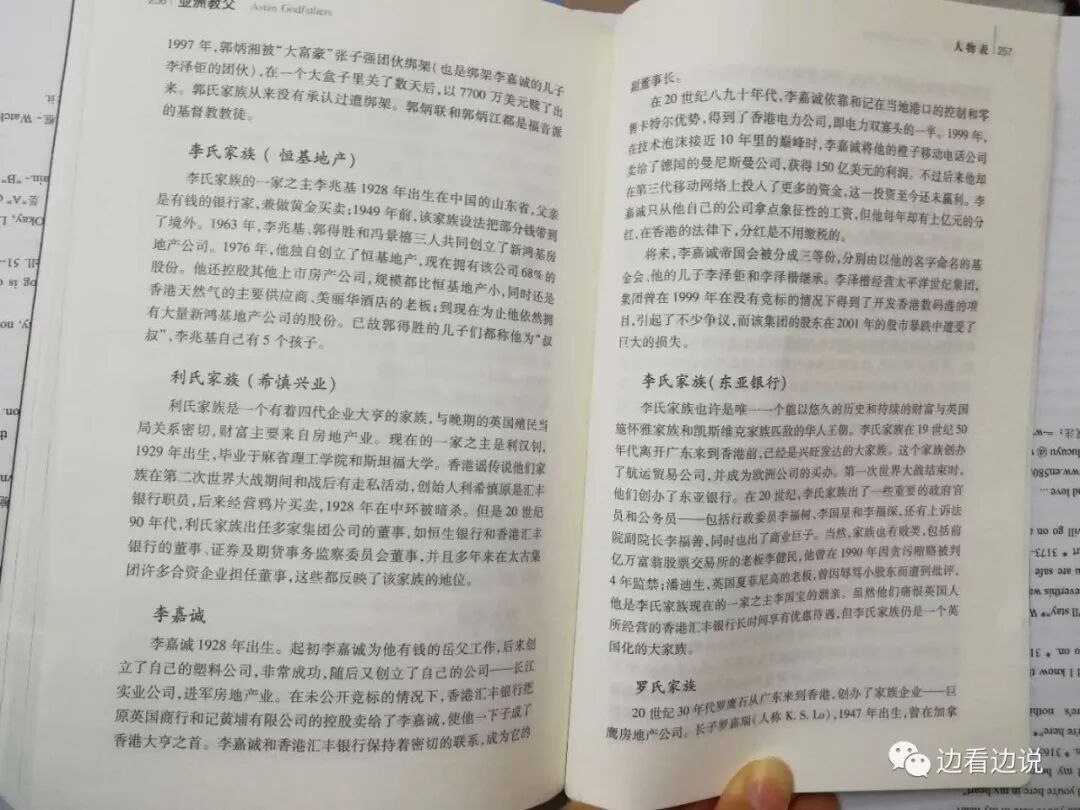 书中,对李嘉诚、何鸿燊(shen,一声,旺盛的意思)、谢国民、林梧桐、陈永栽、马克斯(菲律宾的那个)、苏哈托等香港、东南亚商业巨贾的发迹史和生意经进行了详细介绍。