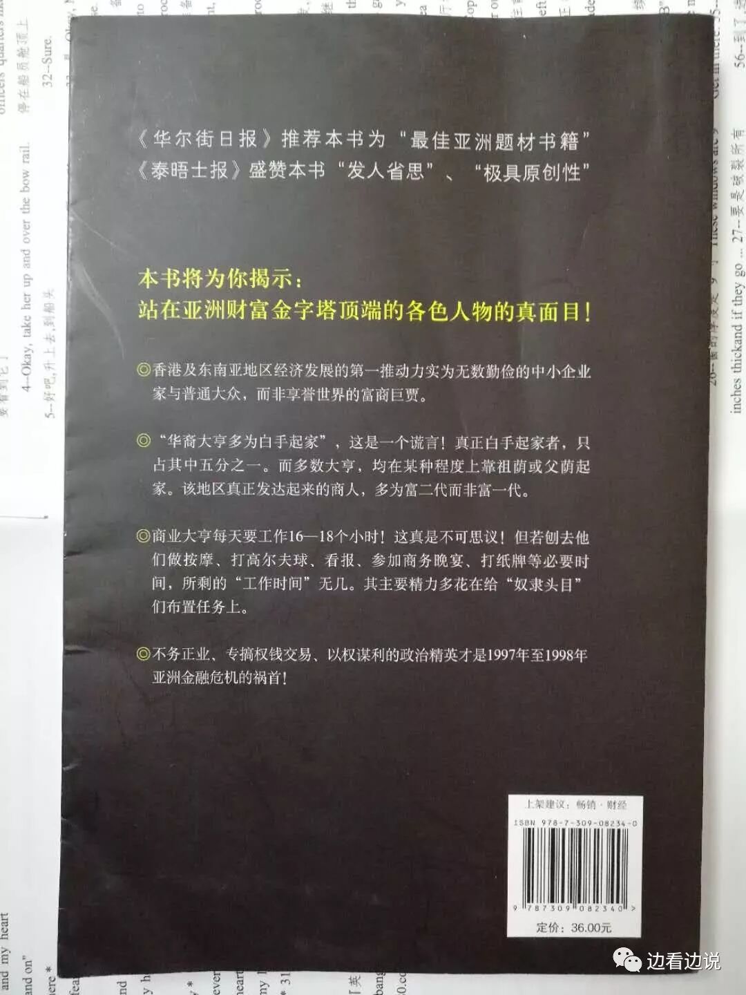 这本书副标题是香港、东南亚的金钱和权力,金钱和权力,怎么样,露骨吧,内容也跟副标题一样。英文原标题是《Asian godfathers》,笔者认为最好,把现实中的人和事,非常明了的表达了出来。