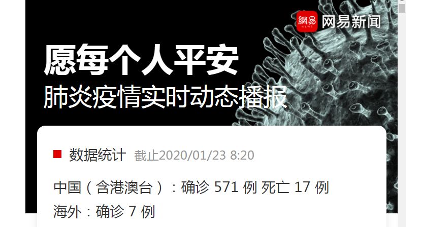 截止到23日早上八点。网易新闻说确诊571例,死亡17例。