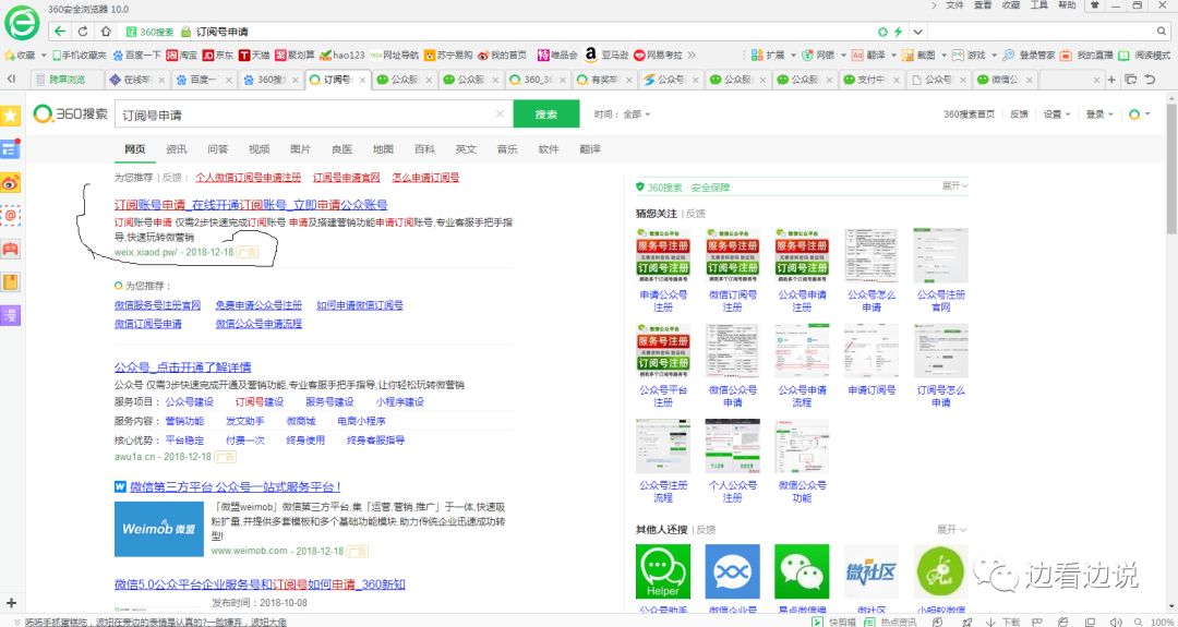 个人(自然人)、企业(法人)等在微信公众平台申请公众号订阅号是免费的(只有认证的时候花钱,个人申请的订阅号、服务号无法认证)。然而,有的不法分子利用消费者掌握信息不全等弱点,在360浏览器等买推广广告,行骗。这里不是诋毁360,是有真实依据的。