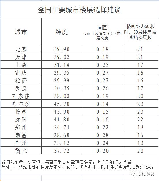 也就是说,全国不同的城市,只需了解m值,就可以了。我给大家算了一下全国不同城市的m值,分享给大家。
