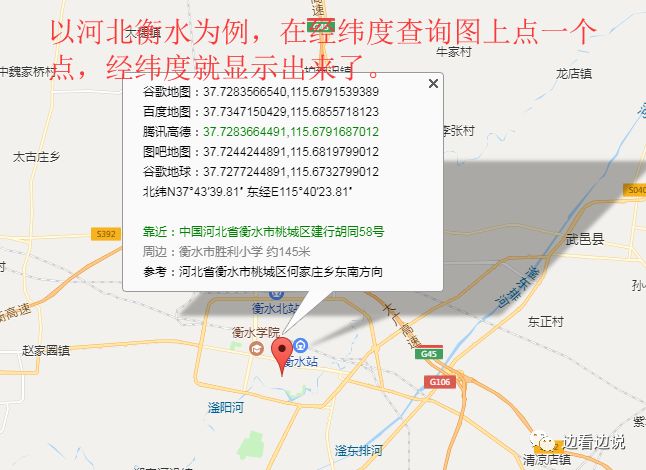 在百度上搜一个经纬度查询的网站(我用的这个,不是打广告啊!http://www.gpsspg.com/maps.htm),或者使用谷歌地图(很多用户现在可能用不了)。