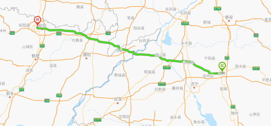 商王盘庚迁都在今天地图上的大致位置,两地距离300多公里