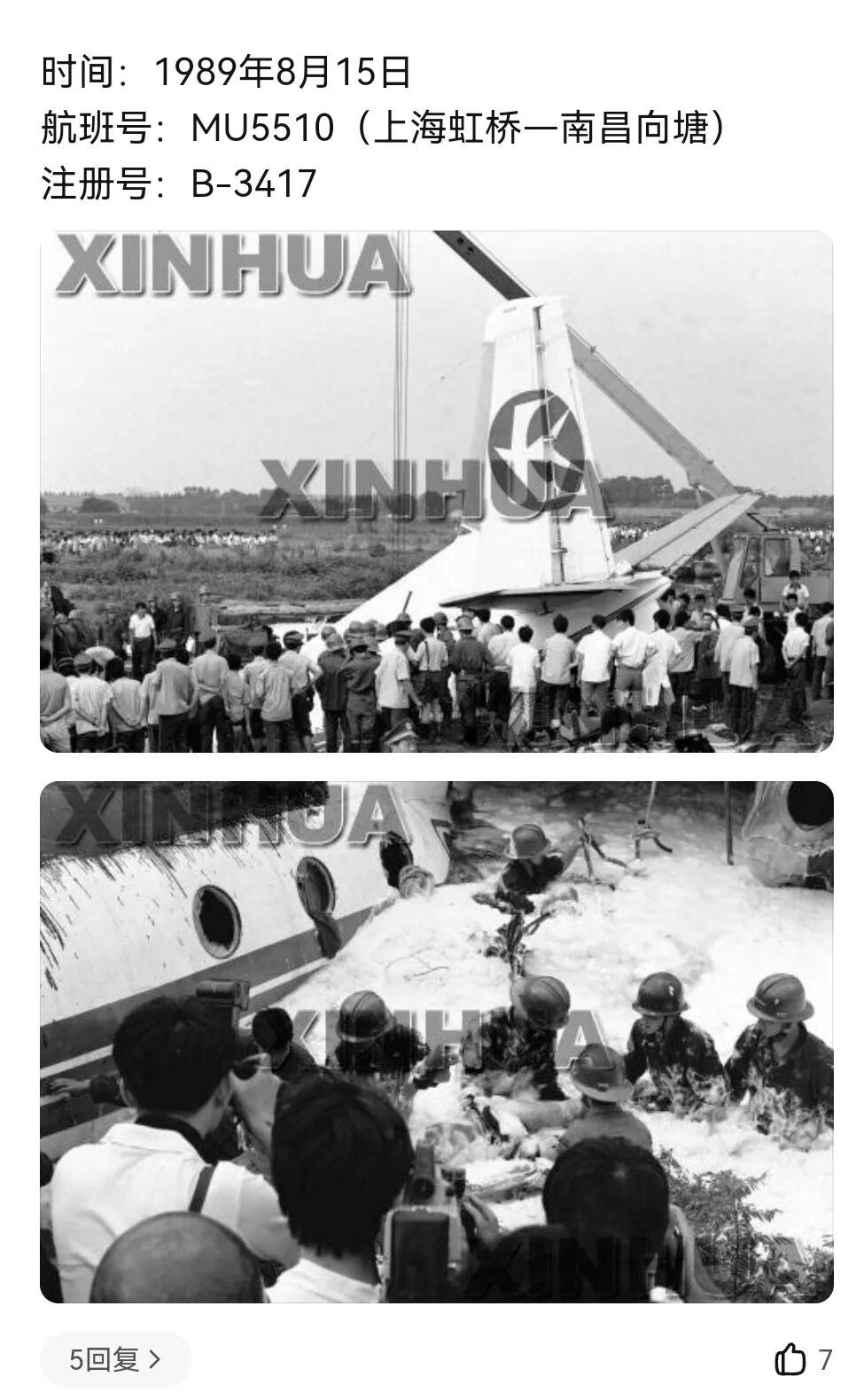 伤亡情况:机组6人,旅客1人共7人遇难