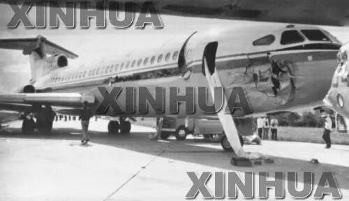 事故简介:从厦门机场起飞后不久,一男子冲入驾驶舱,声称有detonator(即炸药),命令机组飞往台湾,并只留下机长一人在驾驶舱,机长与劫机犯商量表明由于燃料不足,需降落香港补充燃料,机长随后控制飞机在广州上空盘旋30分钟后,向劫机犯表示已到香港,要降落,飞机在即将降落时,劫机犯发觉上当,与机长发生搏斗,企图控制飞机,不允许飞机落地,最终导致飞机落地后,失控偏出跑道后,越过滑行道后,冲入停机坪,机长奋力抵抗,同时加大油门希望重新拉起飞机,越过前方停放的飞机,由于速度不够,飞机先后与机坪上两架飞机相撞,被撞飞机中南方航空B757旅客已登机完毕,在滑行道上准备进跑道起飞,而西南航空B707机上无旅客