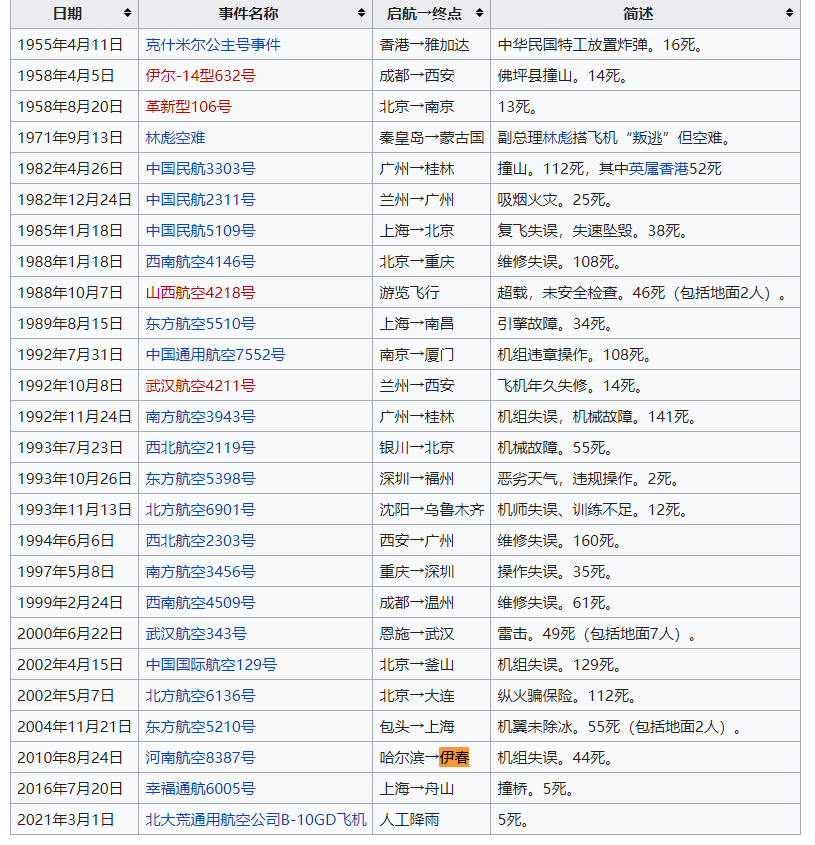 盘点中国民航近四十年历次空难: