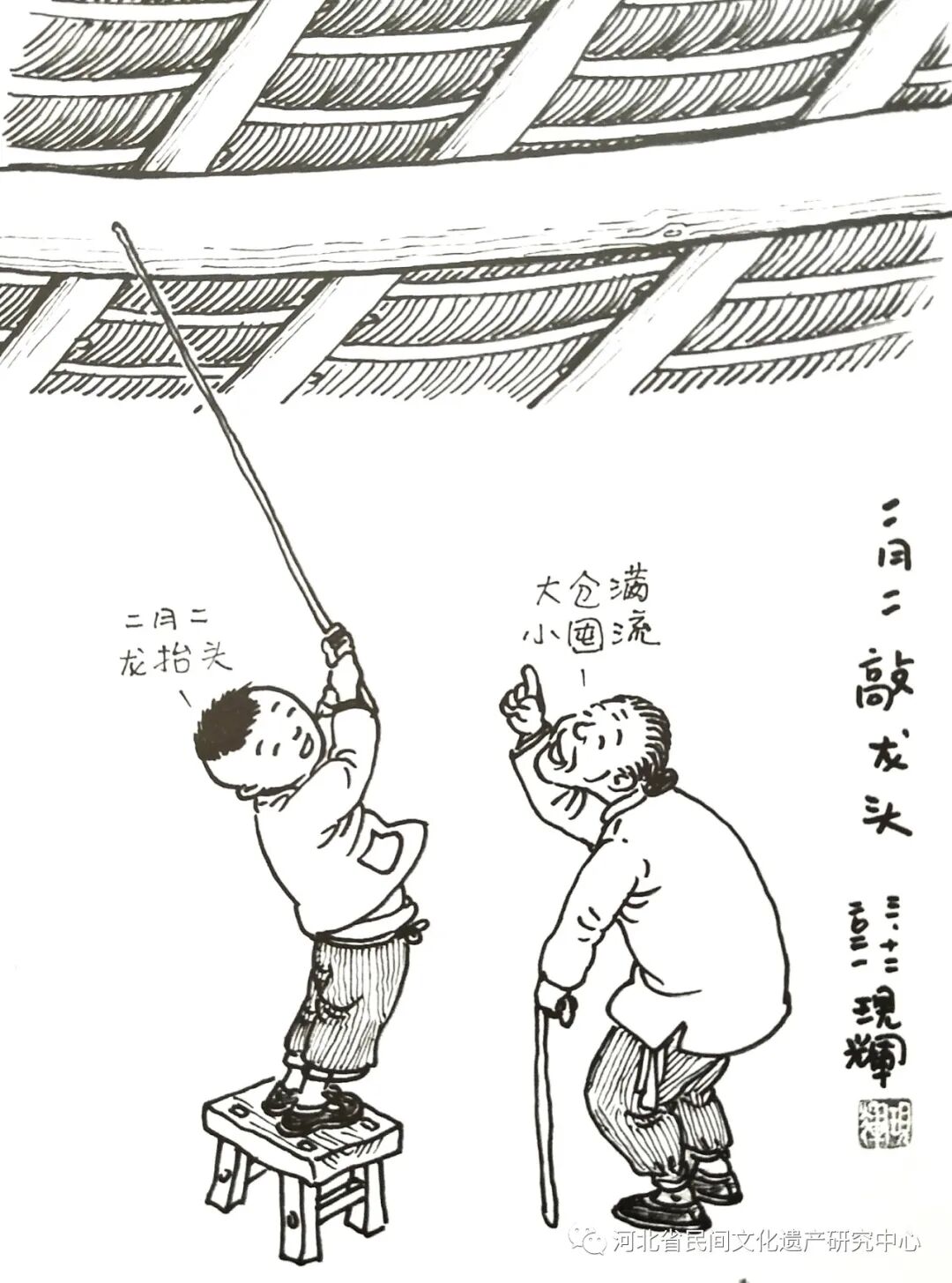 东光县民谣,“二月二,敲炕沿,蝎子蚰蜒不见面。二月二,敲镰头,金子银子向家流。二月二,敲巴斗,六畜兴旺人长寿”。盐山县民谣,还多了一句,“二月二,敲窗台,英才秀士往家来”,可见这个县民风重文教。