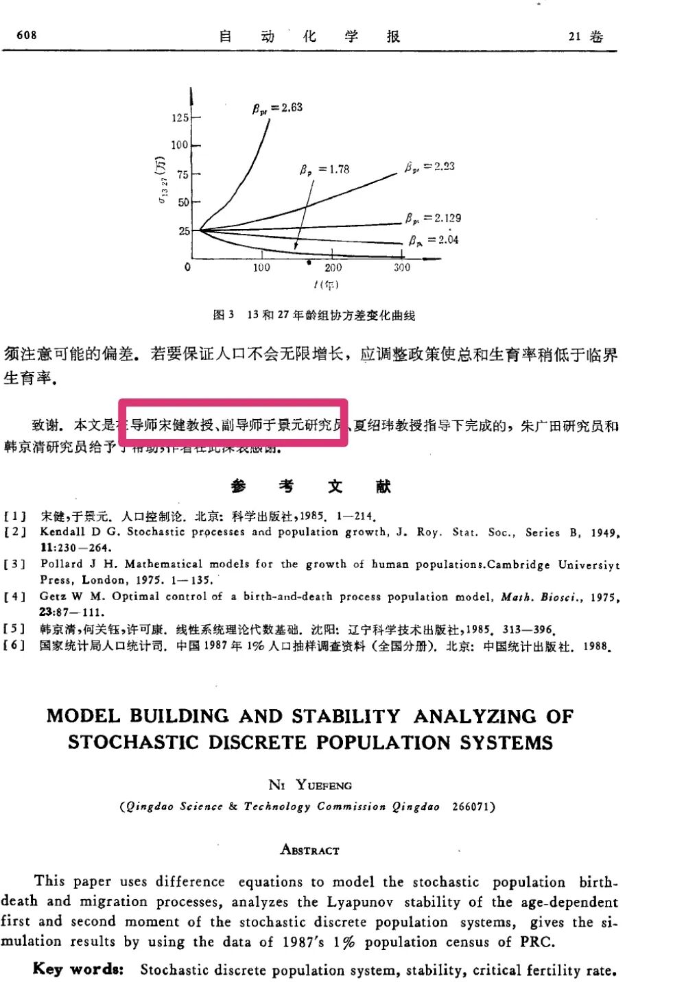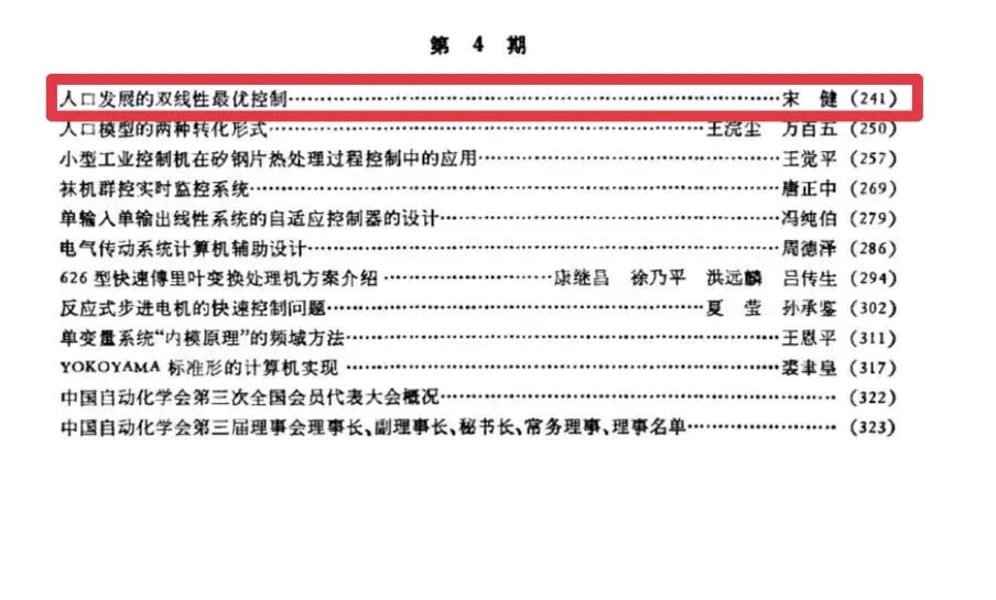 1980年10月,当年第4期的《自动化学报》发表了《人口发展的双线性最优控制》,作者宋健,时任第七机械工业部二院副院长。