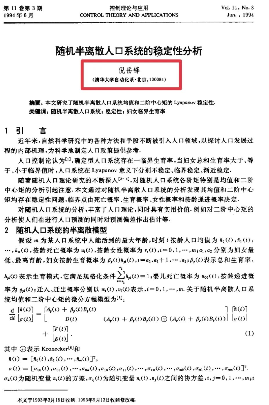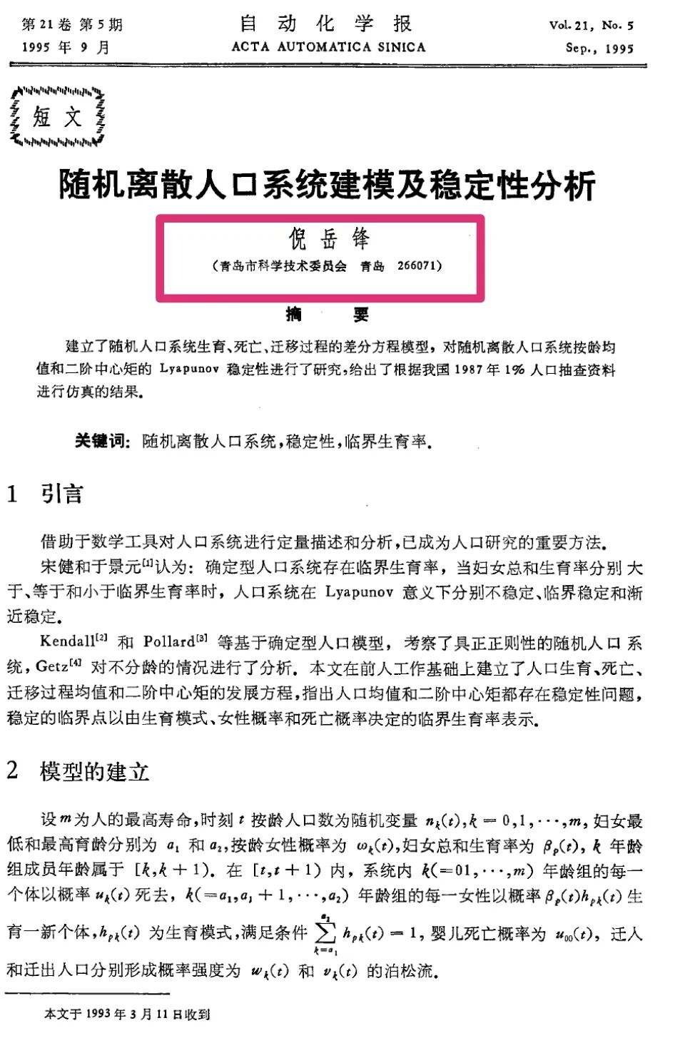 后来,倪岳峰写下了博士论文《随机人口系统及其稳定性分析》。