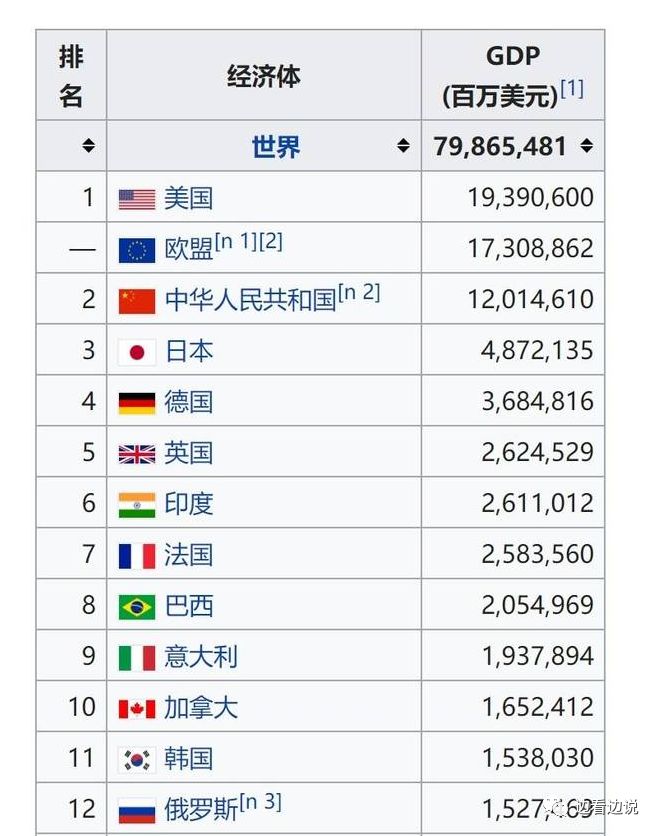 2017年,美国的国内生产总值19.39万亿美元,中国12.01万亿美元(其中房地产您是知道的。)日本4.87亿美元,德国3.68亿美元,欧盟17.30亿美元。也就是说,美国差不多是中国、日本、德国的总和,比整个欧洲还要多一个巴西(巴西的2017年国内生产总值是2.05亿美元)。