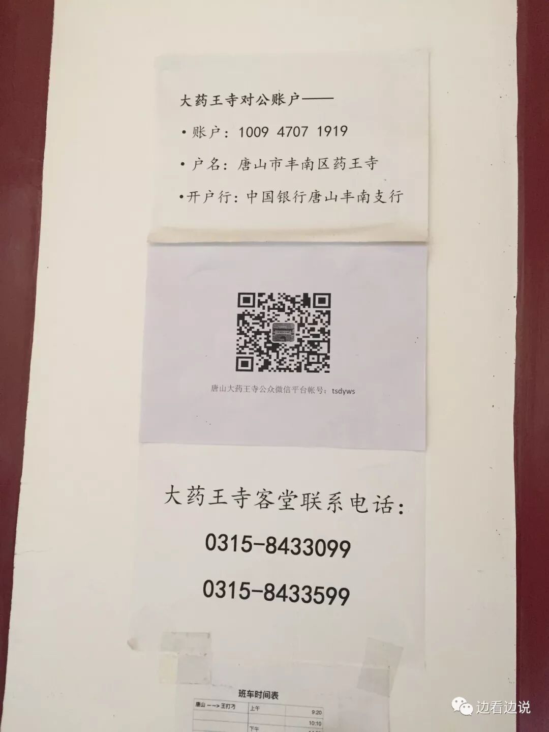 墙上贴的捐款的账号、联系方式