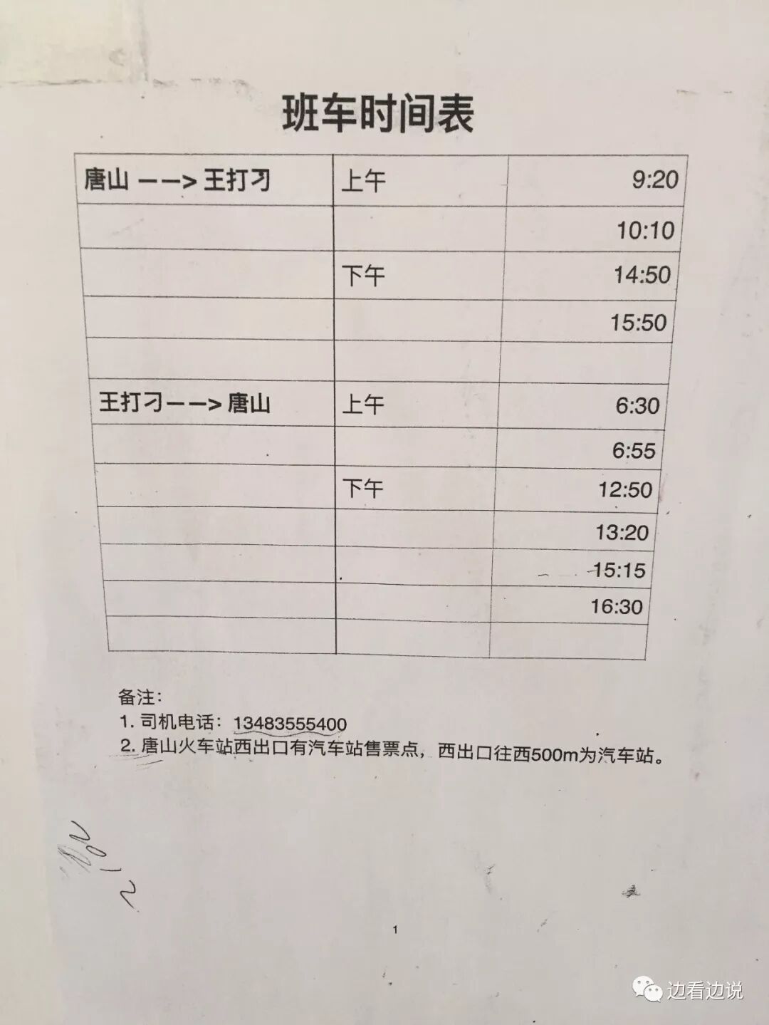 墙上贴的车次