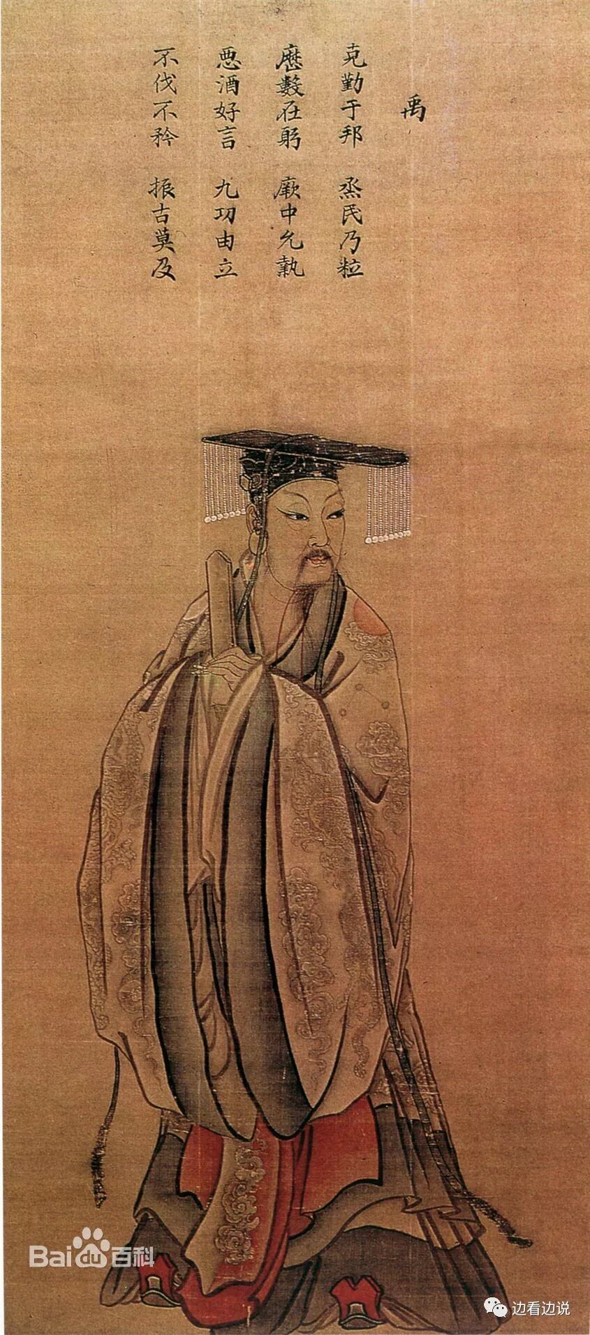 夏禹,传说中古代夏部落的领袖,姒姓,名文命,亦称大禹。《夏禹王像》绘夏禹手持如意笏,头戴王冠,身披龙袍,端庄地立于画面的正中。作者充分地利用线条的造型的能力,生动地刻画了夏禹慈祥和蔼的形象和内在性格。