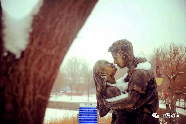 衡水高新区怡水园恋人塑像(雪中很有格调)(张云峰 摄)