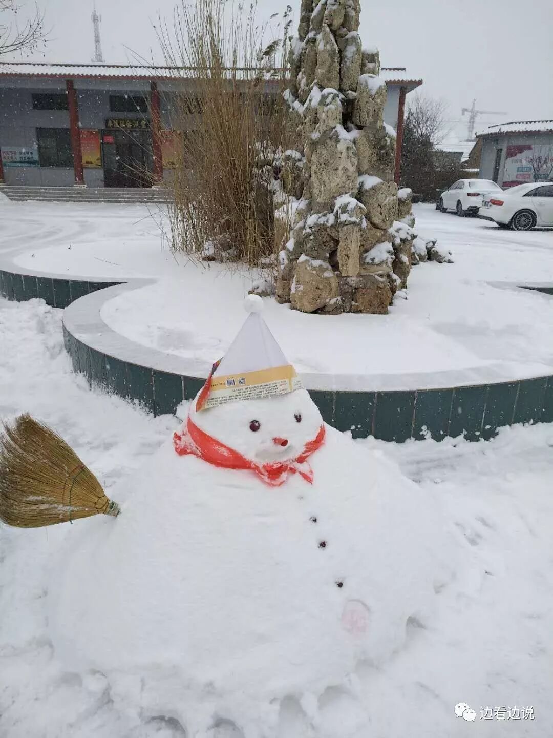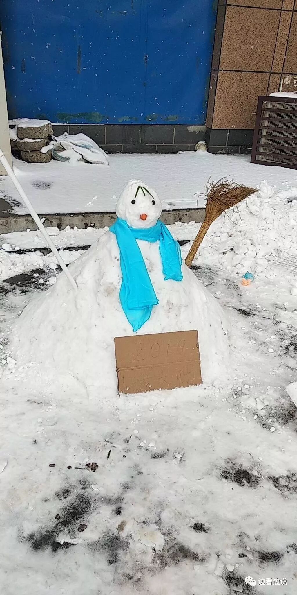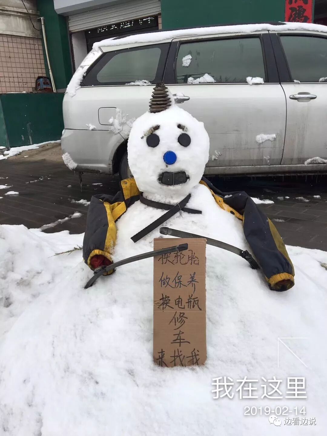 冀州区某汽车维修店主堆的雪人(王志豪 摄)