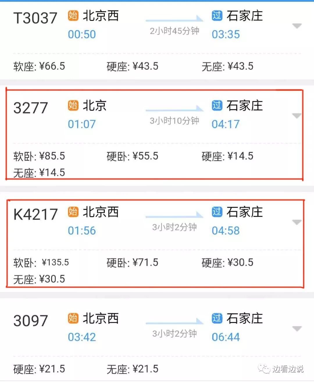然后,小编在看北京回石家庄的车票时,发现了门道