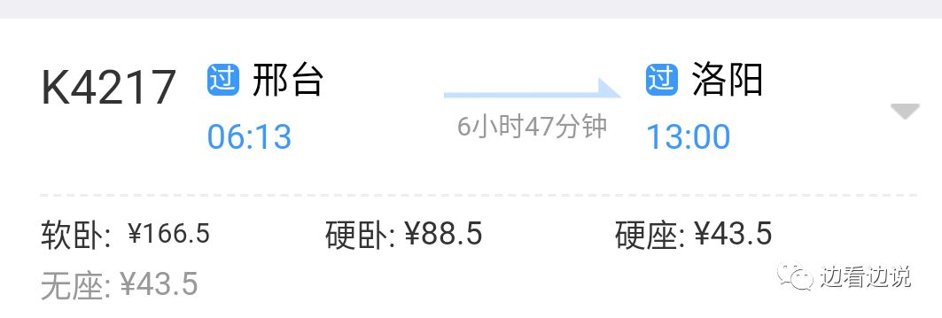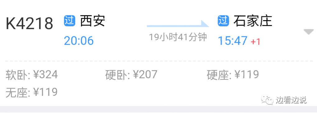 所以,3277和3278、K4217和K4218应该分别是对开的火车,票价应该相同。而且石家庄到北京的车票价格,没有字母开头的21.5元,K开头的43.5元,小编坐了这么多年车,都是一样的,今天咋便宜了?是铁总出现bug了?