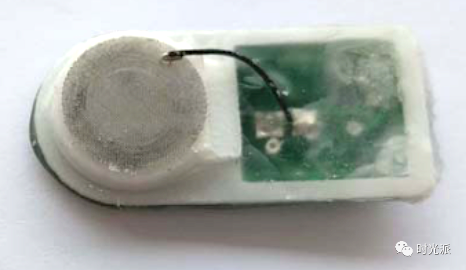 芯片外观如下图,它的体积小于硬币,却是个五脏俱全的生物电子设备;