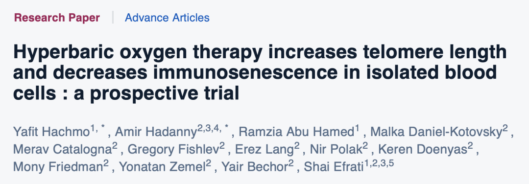 2020年11月18日,来自特拉维夫大学的Shai Efrati教授团队宣布,他们刚刚完成的小型临床试验显示,高压氧仓疗法能够延长64岁以上中老年人超过20%的端粒长度,并且减少近35%的衰老免疫细胞,大幅逆转免疫衰老。