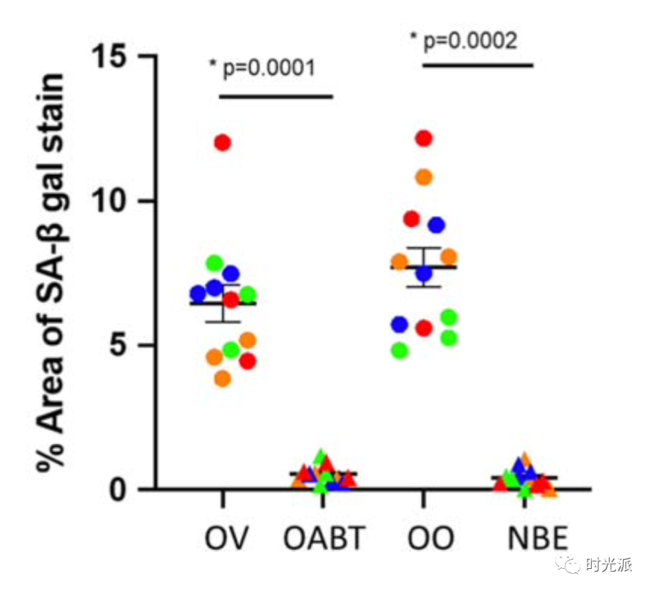 在实验的末尾,研究人员还测试了一下血浆稀释法的衰老细胞清除功效,毕竟这也是当前抗衰老的核心策略之一。SA-βgal细胞测试显示,血浆稀释法清除衰老细胞的能力,完全不亚于当前如日中天的Senolytics(一类专门用于靶向击杀衰老细胞的特殊药物)。