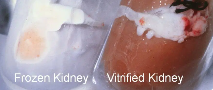 而在1967年之后,人体冷冻技术有了突飞猛进的发展,除了冷冻保护剂的升级,冷冻的方法也经历了“控速慢冻”到现在最常用的“玻璃化技术”,即让物质转变为玻璃状固体。使用高浓度的冷冻保护剂可以将生物组织冷却到非常低的温度,使水形成没有结晶的无定形冰。