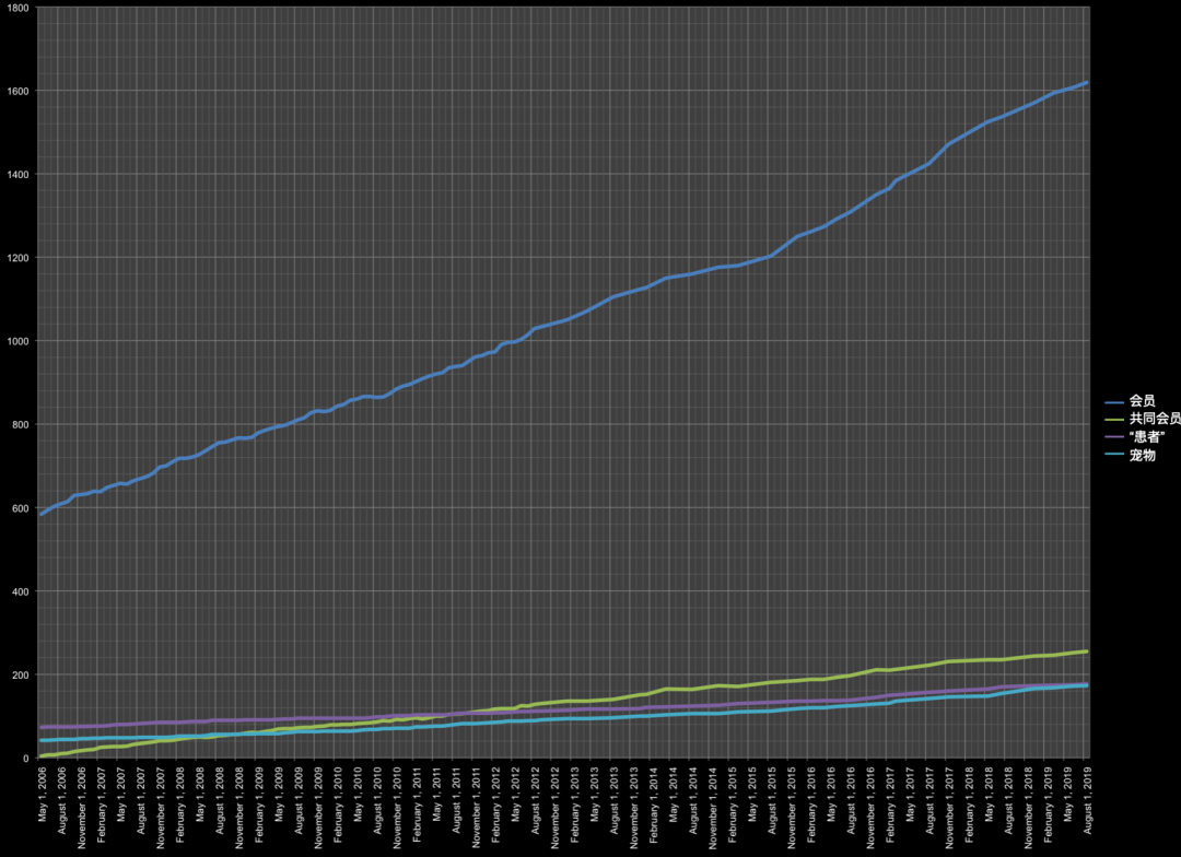 Cryonics Institute网站统计的从2006年之后的会员及“患者”数据变化