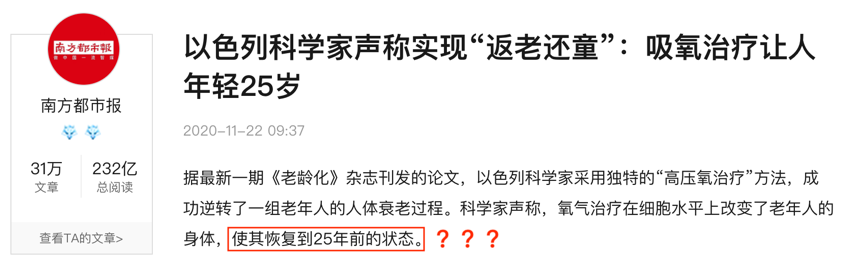 质疑和批评随之而来,而该研究主导者,以色列特拉维夫大学教授Shai Efrati,人设一度从“向上帝偷时间”的严肃医生,摇身一变成为卖氧舱的“微商头子”。