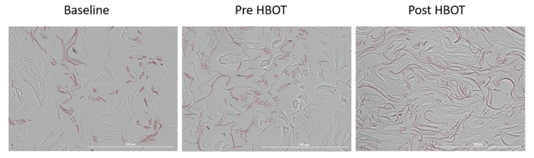 高压氧治疗后,胶原纤维密度增加超过10%。