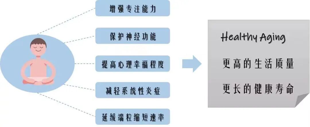 针对冥想的研究涉及认知行为学、神经科学、细胞生物学等多个学科,从各方面体现了冥想对改善衰老(尤其是大脑衰老)的积极作用。