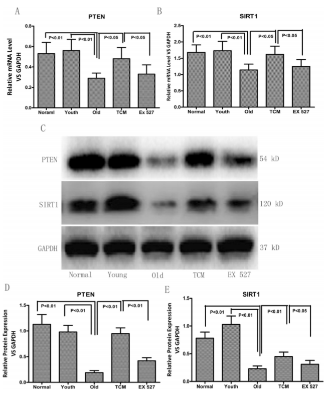 而当学者们同时使用SIRT1抑制剂(EX527)与PGQYD喂养大鼠,上述效果又会消失不见。