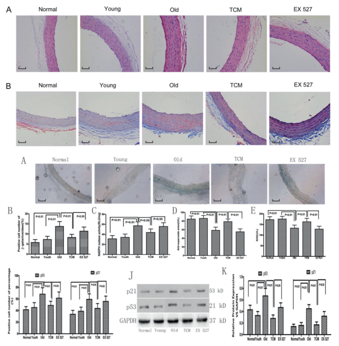 此次试验中,研究人员以患有高血压的雄性大鼠为对象,连续七七49天,给它们“灌”下了PGQYD(药材组成:天麻、勾藤、石爵明、毛里和牛西),发现药物有效降低了大鼠血压,且综合形态学(主动脉形态)和生物标识物(β-半乳糖苷酶、p53与p21表达等)变化,大鼠体内血管衰老状况被神奇逆转。