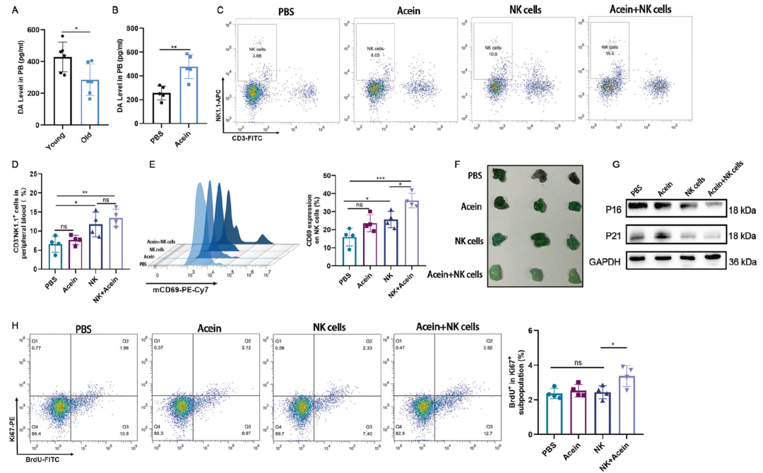 图注:NK细胞与Acein联合逆转了老年小鼠的年龄相关表型