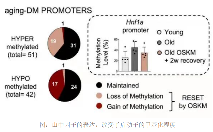 图注:山中因子的表达,改变了启动子的甲基化程度