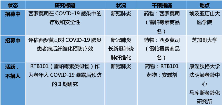 表:正在开展的以新冠肺炎为适应症的雷帕霉素人体临床试验。来源ClinicialTrials. gov